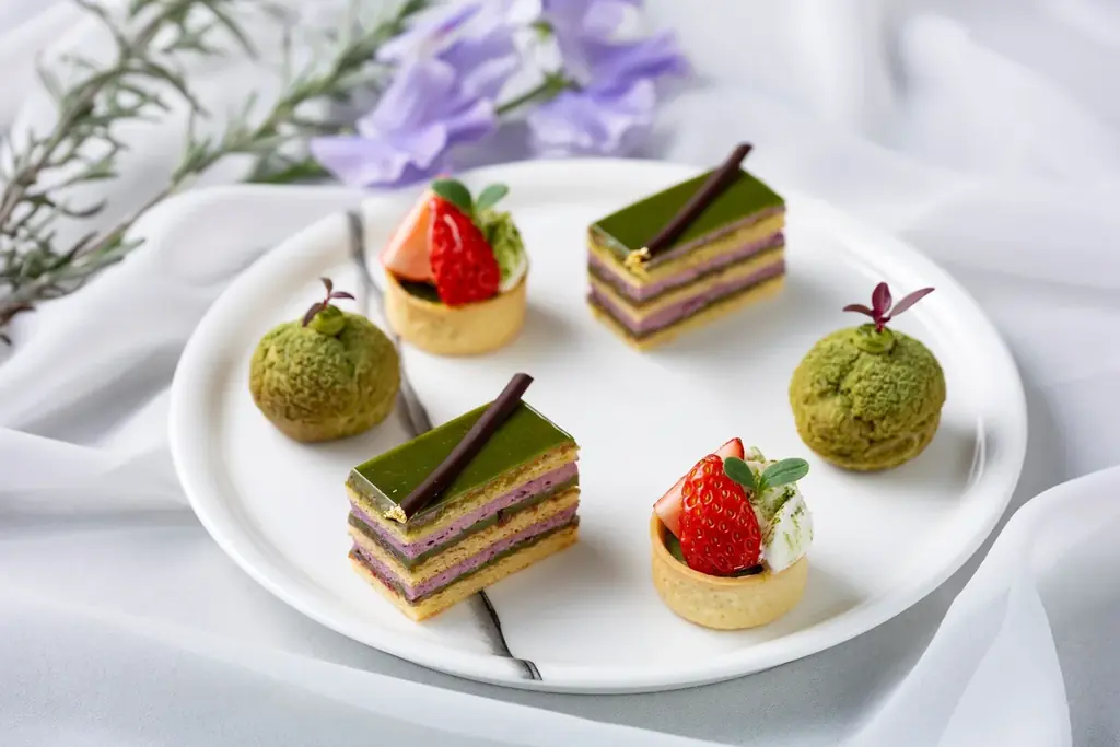 構成と見どころ:抹茶とベリーを主役にしたスイーツとセイボリー