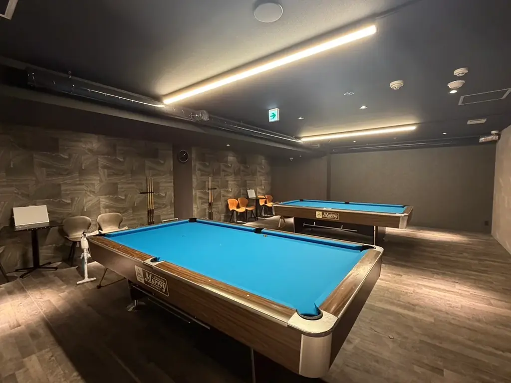 ビリヤード台は2台を導入しています。機種はマレー製ビリヤード台で、競技性を意識した本格的な仕様が採用されています。ビリヤードも予約制として運用されます。