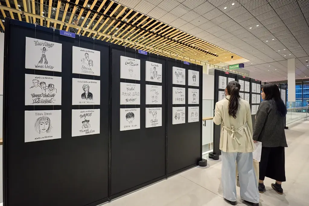 3階では番組ナビゲーターであるクリス・ペプラーがこれまでに描いてきた、チャートNo.1を獲得したアーティストのイラスト原画を展示しました。藤井 風やHANAなどを繊細なタッチで描いた作品群が並び、来場者は原画に見入っていました。