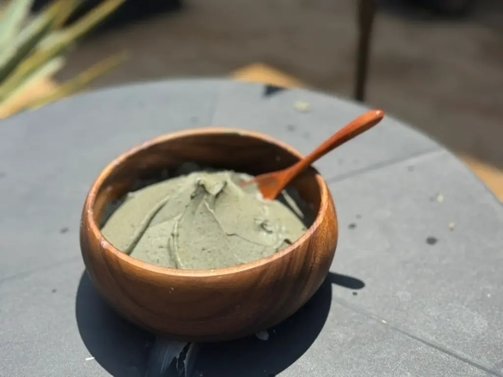 いなべ市で育った石榑(いしぐれ)茶葉と温泉成分を配合した泥パックをサウナラウンジの外気浴スペースに設置します。肌感覚でいなべ産の素材を体験できるコンテンツです。