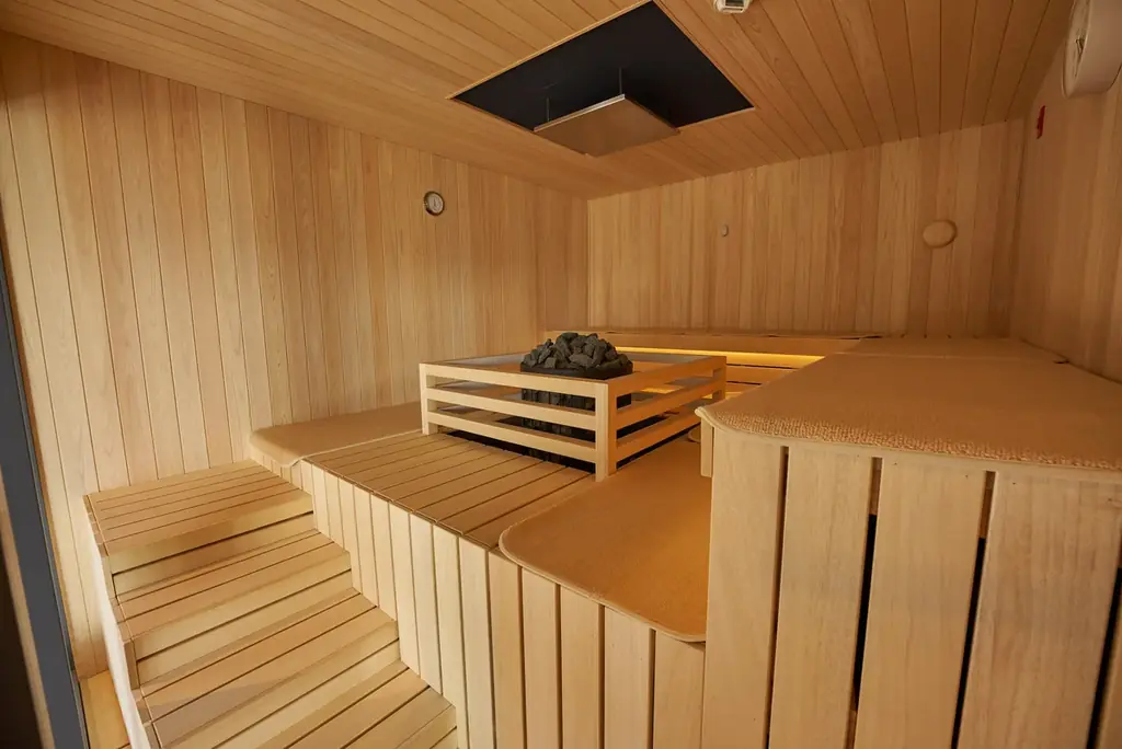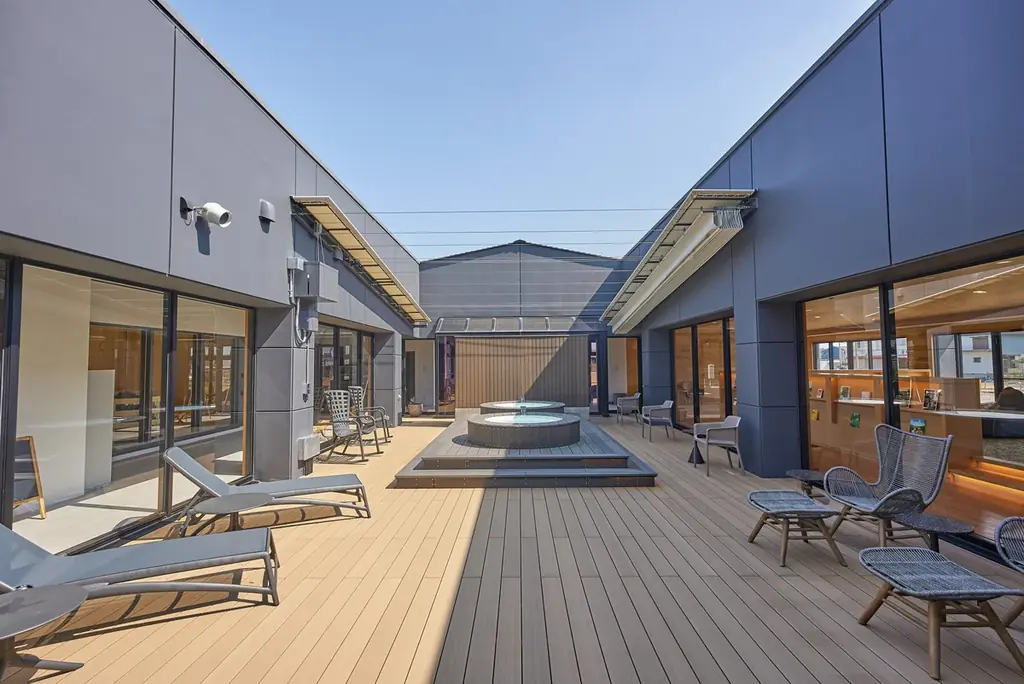 サウナラウンジSerowは北欧のサウナの楽しみ方を着想に作られた空間で、3種類のサウナと外気浴スペースを備えています。屋内ラウンジでは内気浴やフリードリンク、書籍などをゆったりと利用できます。水着着用での男女同時利用が可能で、中庭デッキには井戸水を使った水風呂も用意されています。