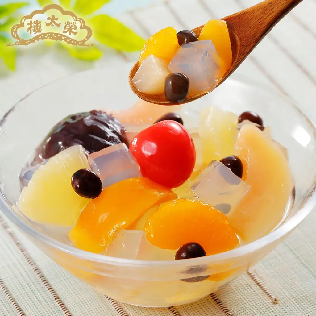 - 寒天とフルーツ、黒みつなどを組み合わせたあんみつ。ギフト向けのセットにも同梱されています。