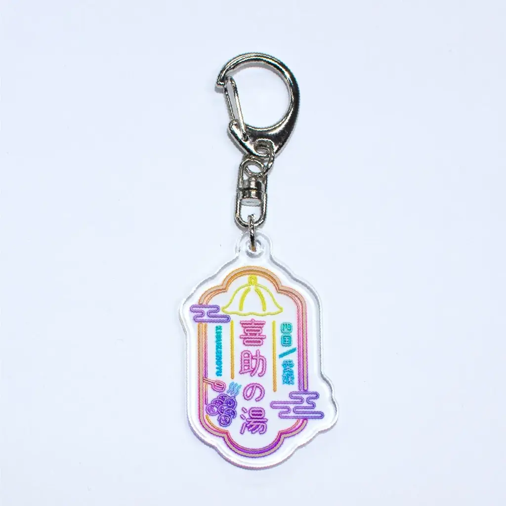 今回のアクリルキーホルダーは全6デザインで、定番のkScロゴデザイン、レトロな看板風デザイン、施設でおなじみのキャラクターデザインなど、多様な表情をそろえています。デザインごとに「喜助らしさ」を打ち出すことを重視しました。
