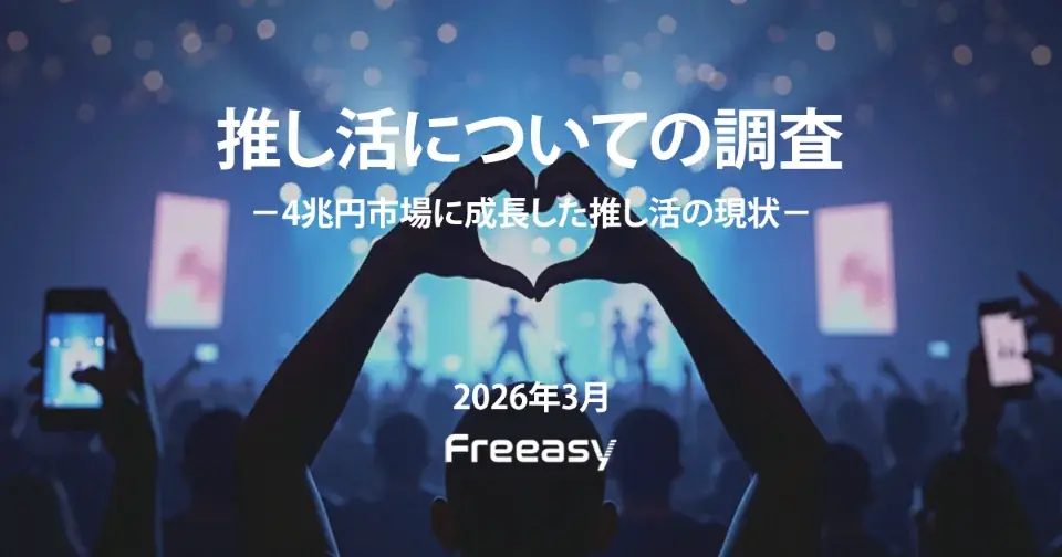 アイブリッジ株式会社が提供するセルフ型アンケートツールFreeasy(フリージー)は、約1,300万人の調査モニター会員を活用し、2026年2月27日に15歳以上の男女を対象としたアンケート「推し活についての調査-4兆円市場に成長した推し活の現状-」を実施しました。プレスリリースは2026年3月30日14時50分に公表されています。