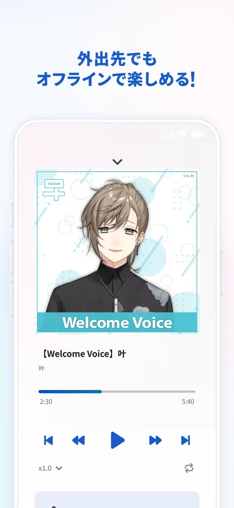 同期されたボイスはアプリ内でダウンロードして再生するか、ストリーミングで再生するかを選択できます。ダウンロードすればオフライン再生が可能で、移動中や外出先でも利用できます。