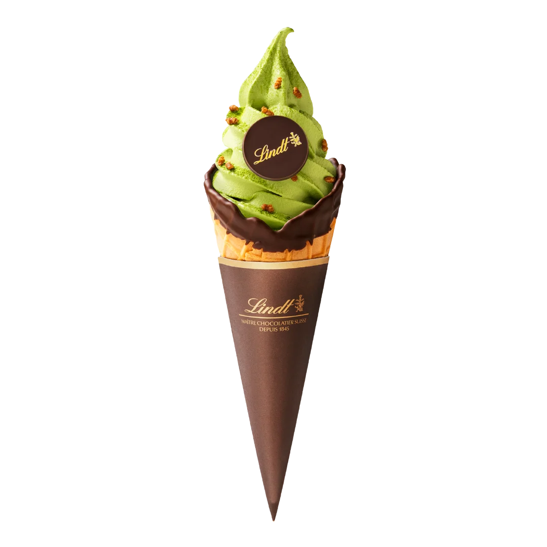 このジェラートは「濃厚で奥行きのある」商品として紹介されており、リンツが初めて打ち出す抹茶とカカオの組み合わせによる新しいジェラート体験と説明されています。