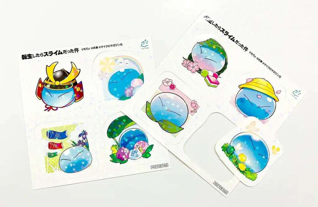 - かなで文庫『転生したらスライムだった件』シリーズを1冊購入につき1枚配布