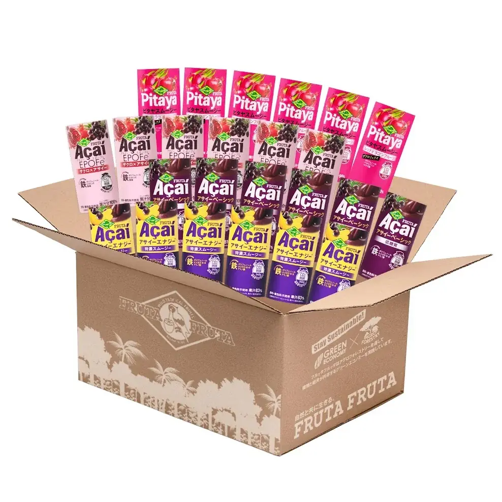 | バラエティセット | アサイースムージー&ピタヤスムージー 4種 × 各6本(195g×24本)、送料無料(商品ページ: https://shop.frutafruta.com/products/f-293) |