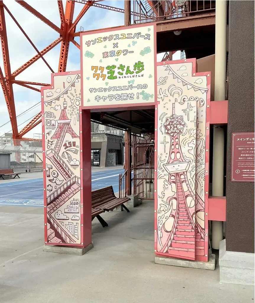 東京タワーのメインデッキや外階段(高さ150mまで続く外階段)に隠れているキャラクターを探しながら登っていく体験型のコンテンツです。参加者は解答用紙を手に、塔内の複数箇所におかれたサンエックスユニバースのキャラクターを見つけることで進行します。