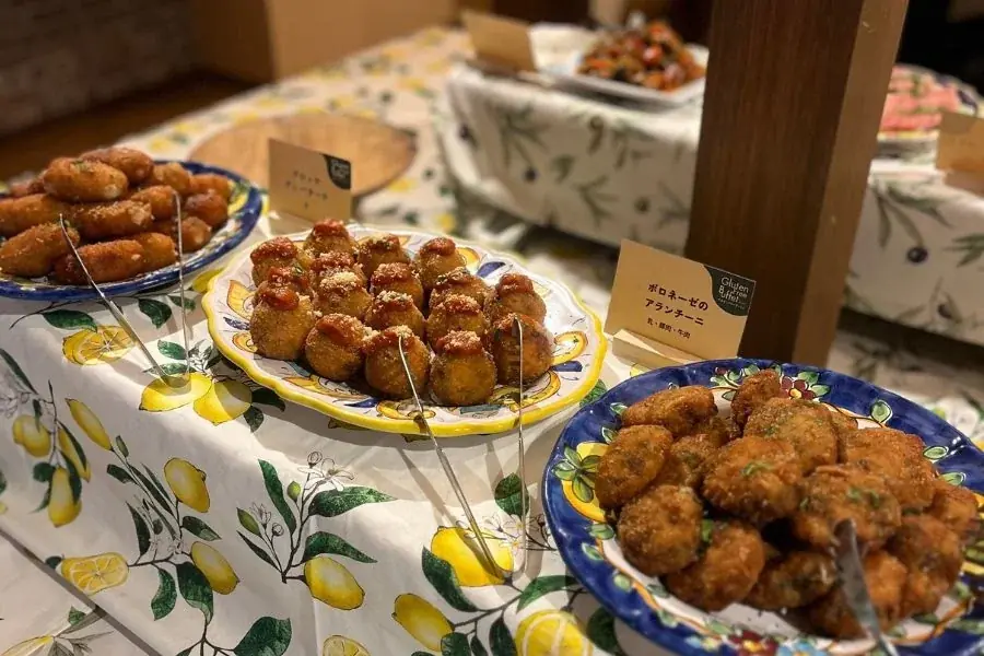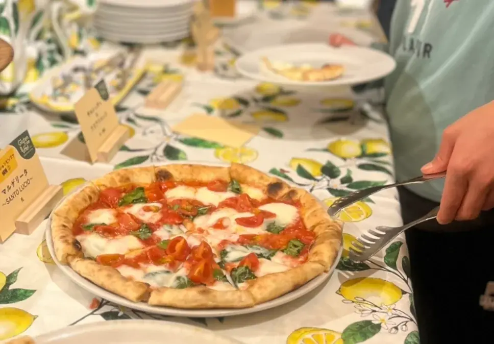 当日のブッフェには、グルテンフリーピッツァを中心に、小麦を使わない揚げ物や前菜、サラダ類など多彩なメニューが並びました。主催側は「普段グルテンフリーではなかなか口にできない揚げ物も提供した」と報告しており、食感や風味に工夫を凝らしたメニュー構成が特徴です。