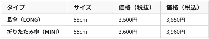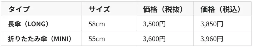 両モデルともに共通仕様を持ち、日傘としての遮光・遮熱機能、雨傘としての防水性能、木手元やホックタイプ留めベルトなどの共通装備が備わっています。
