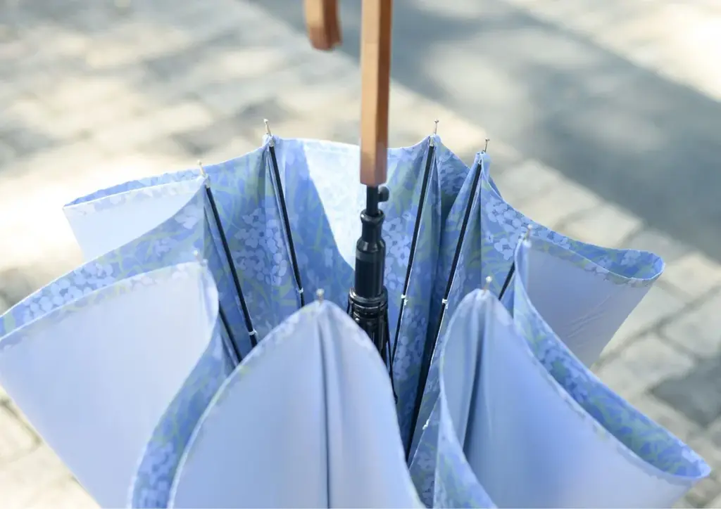 最大の特徴は、晴雨兼用傘に広く見られる「表面はデザイン、内側は黒コーティング」という仕様をあえて排した点にあります。静岡県出身のデザイナー、ichyanagi ayano氏による水彩画のフラワーデザインを傘の内側に施し、傘を開いた瞬間に頭上が“自分だけのフラワーガーデン”になることを目指しています。