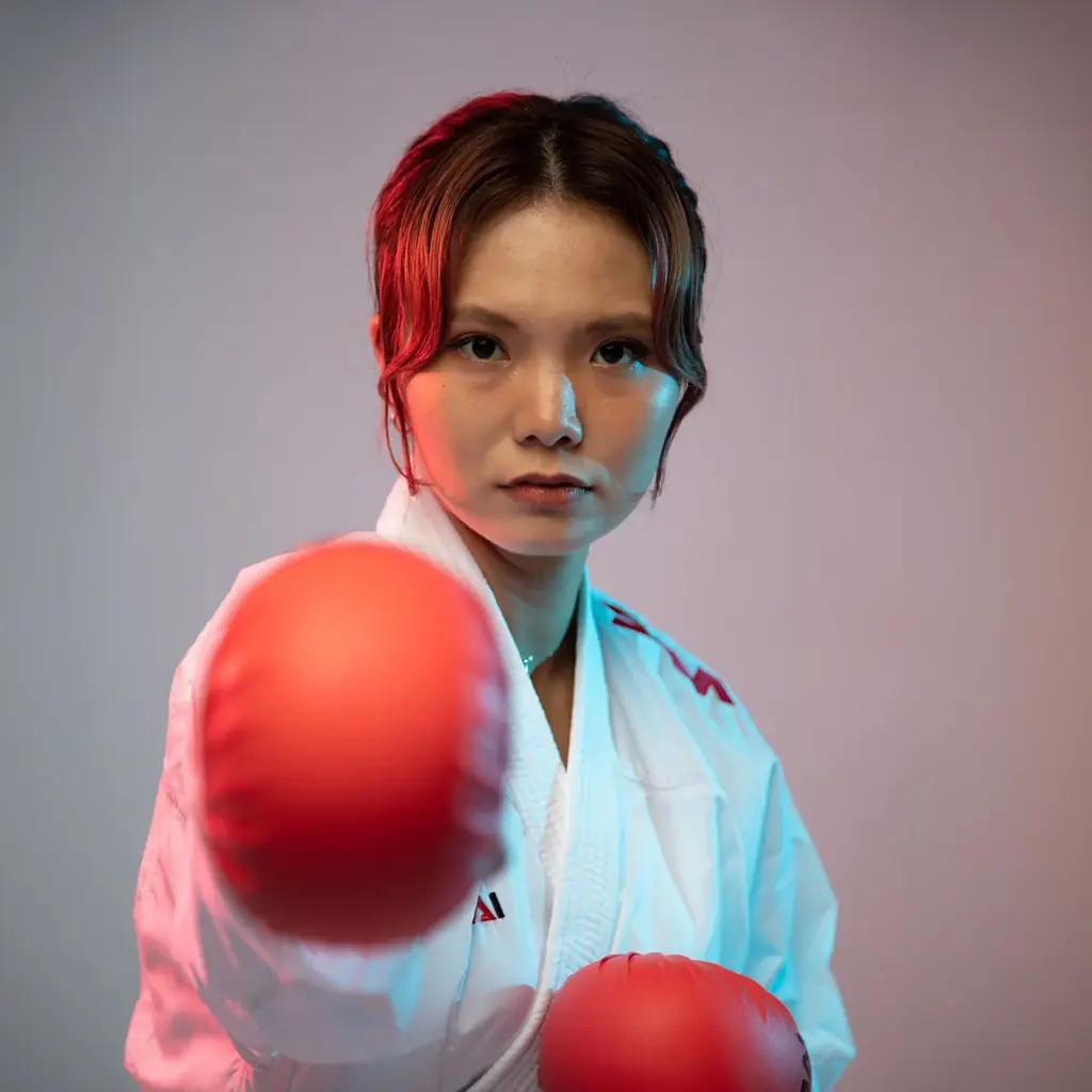 空手家。ワールドゲームズ2022 女子組手50kg級金メダリスト。7歳から空手を始め、小学校・中学校・高校・実業団で全日本大会優勝を重ね、日本の空手界のホープとして活躍しました。