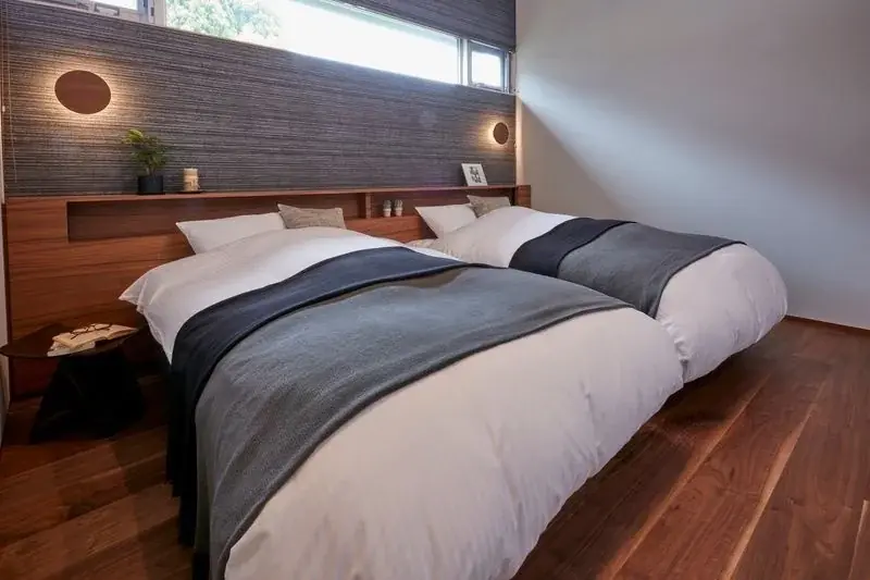 本施設は「癒(IYASHI)」と「穏(ODAYAKA)」の2棟構成で、少人数からグループまで幅広い人数に対応します。複数の寝室と和室、ベッドルームを備え、プライベート空間と共有空間を両立させた設計です。