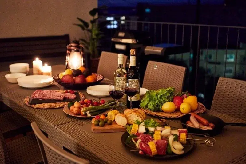 設備面では、屋根付きBBQスペース、フルキッチン、スマートチェックイン、暖炉などが整っており、ホテルとは異なる自由な滞在設計が可能です。また、テラスでのBBQプランや季節に合わせたケータリングの提供も用意されています。