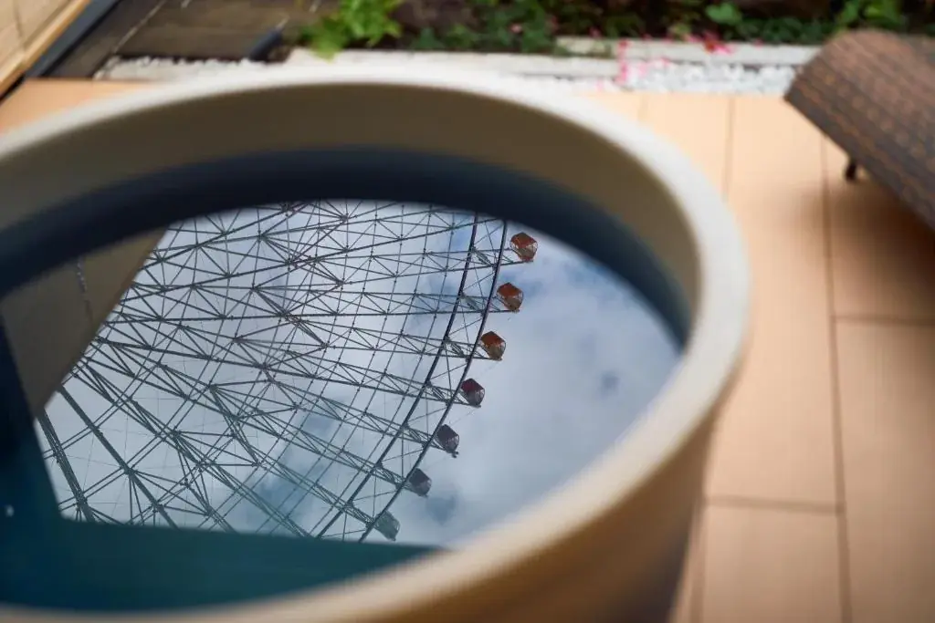 | 施設の特徴 | 屋上風呂の高灯籠、観覧車ビュー、最大15名収容、プロジェクター・大型テレビ・Nintendo Switch完備、古民家風リノベとモダンデザインの融合 |