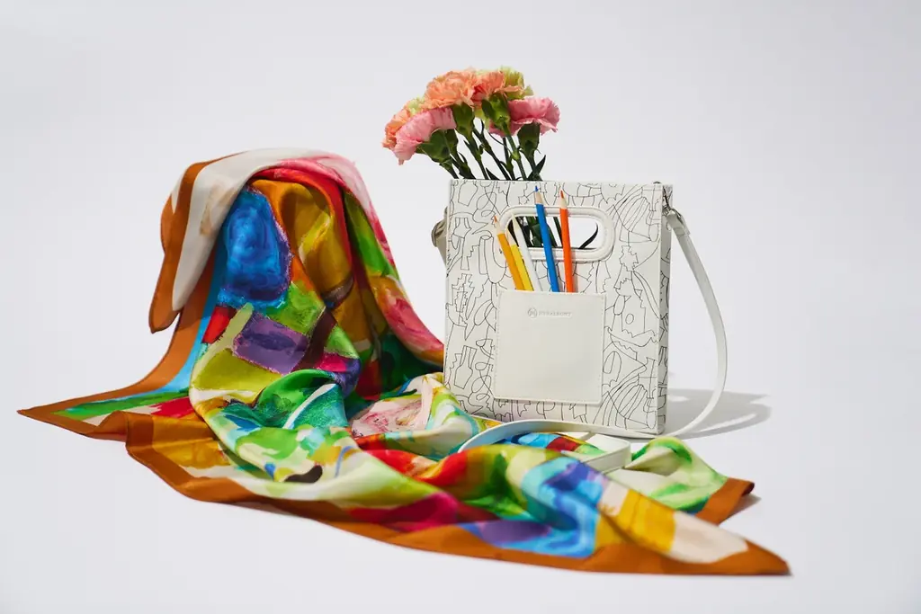 今回のポップアップでは、新宿高島屋限定販売となるシルクスカーフを含む数量限定アイテムが並びます。作家ごとのアートを大判スカーフやTシャツ、トートバッグなどで展開し、先行販売となる商品も用意されています。
