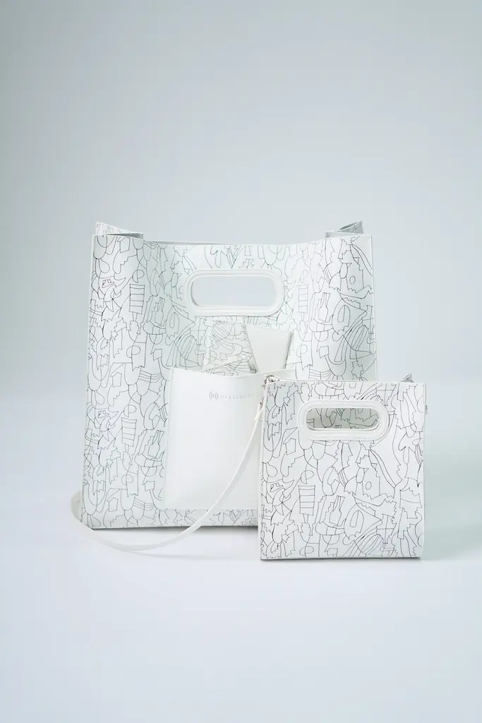 | リサイクルレザーバッグS(「夏の魔物」Satoru Kobayashi) | W20cm×H23cm×D6cm | 19,800円 | 軽量で日常使いに適したサイズ |