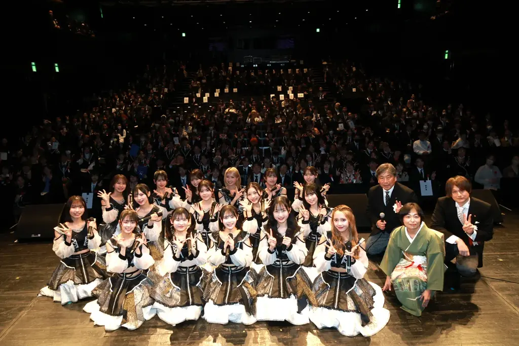 NMB48は難波を拠点に活動するアイドルグループで、選抜メンバー16名がサプライズ出演しました。披露楽曲は最新曲「青春デッドライン」で、会場では卒業生に向けた祝福と一体感を生む演出として奏でられました。