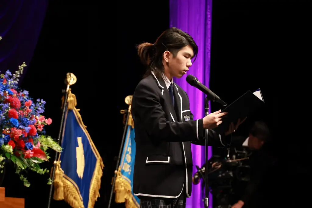 代表者たちはそれぞれの立場から、これまでの学びや仲間への感謝、これからの進路に向けた決意を述べ、会場に集まった卒業生と在校生へ向けた励ましの言葉を送りました。