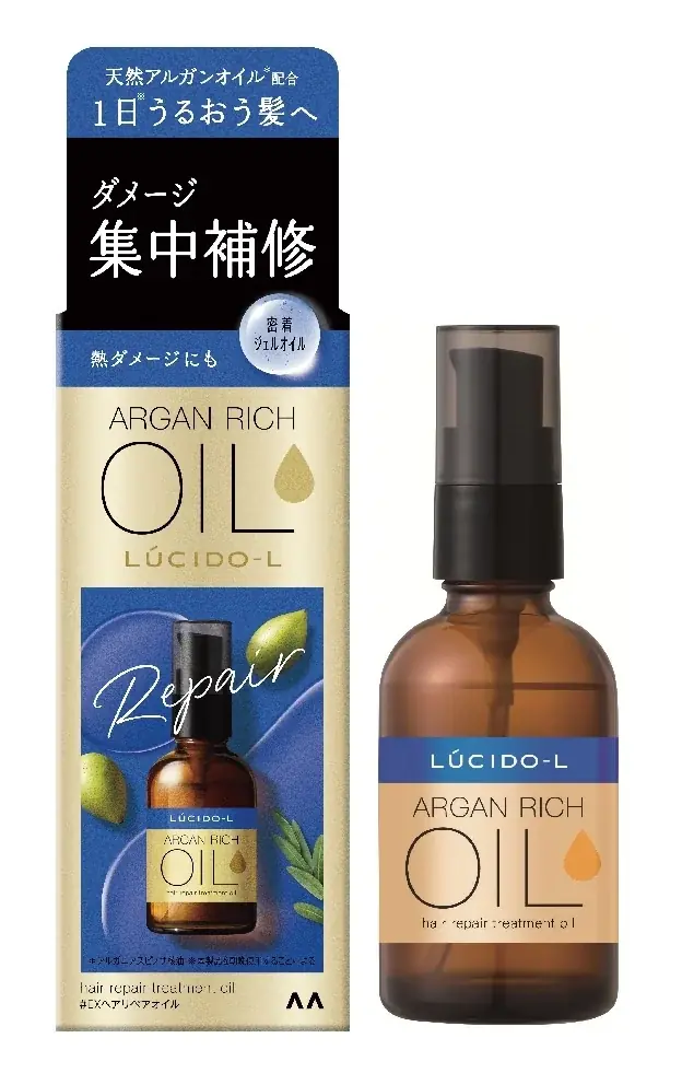 「ルシードエル アルガンリッチオイルシリーズ」は保水力の高いアルガンオイル(アルガニアスピノサ核油)を配合し、髪の芯からうるおいを与えることを主眼に開発された製品群です。シリーズは髪質やダメージ度合い、好みの仕上がりに応じて選べる複数アイテムで構成されています。