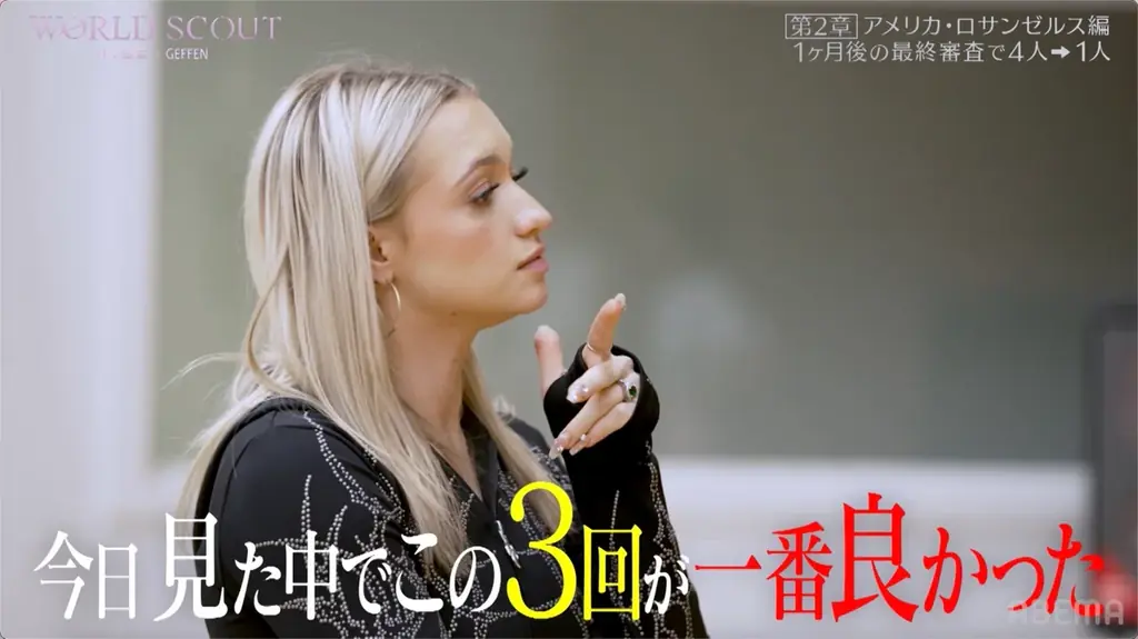 HYBE × Geffen Recordsによるグローバル・タレント発掘プロジェクト『WORLD SCOUT: THE FINAL PIECE』の#6が、ABEMAで2026年3月31日(火)よる8時に放送され、放送終了後より無料見逃し配信が開始された。本回では、日本での3次審査を突破したHIORI、AYANA、咲来(SAKURA)、AOIがアメリカ・ロサンゼルス入りし、豪華宿泊施設での共同生活と過酷なトレーニングに臨む様子が描かれている。