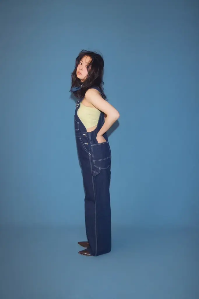 本コラボレーションでは莉子がモデルを務めることで、フェミニンなムードとカジュアルなデニムの組合せをビジュアルで伝えている。
