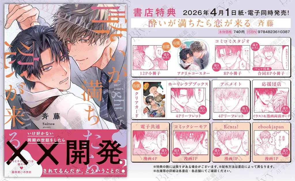 2026年4月1日、株式会社ジーオーティーはBivy comic レーベルよりコミックス『酔いが満ちたら恋が来る』(著:斉藤)を発売した。発表は同日10時30分に行われており、出版社および制作陣は本作を同レーベルの新刊として位置づけている。