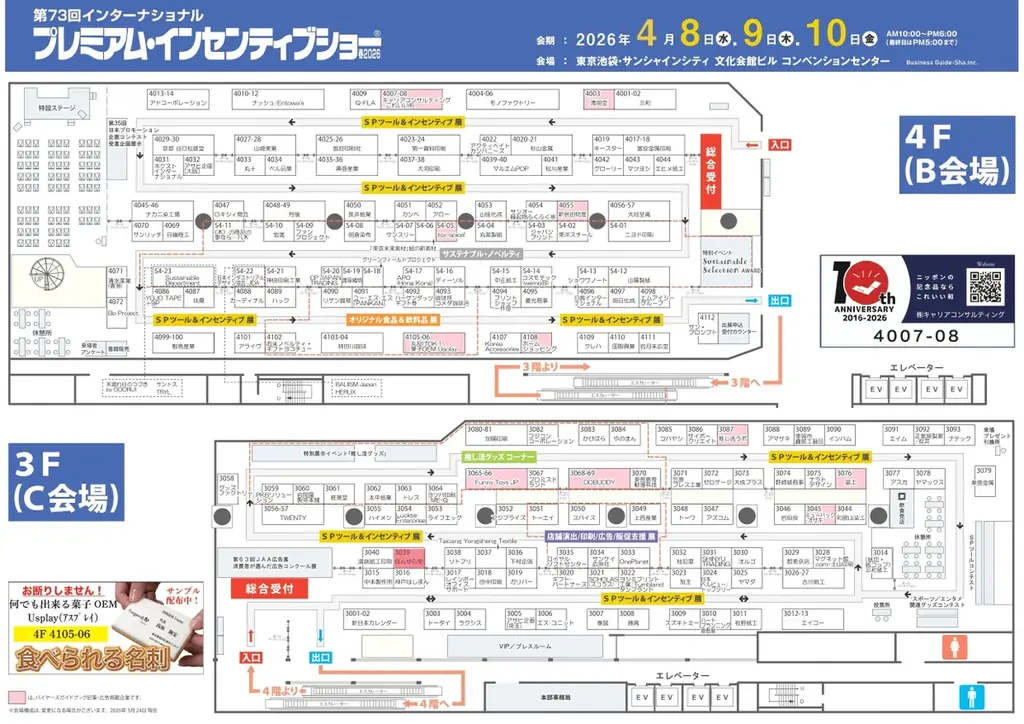 | 展示会 | 第73回プレミアム・インセンティブショー2026春(会期:2026/4/8-4/10、会場:池袋サンシャインシティ文化会館3・4階、ブース:3F(C会場)・3039) |