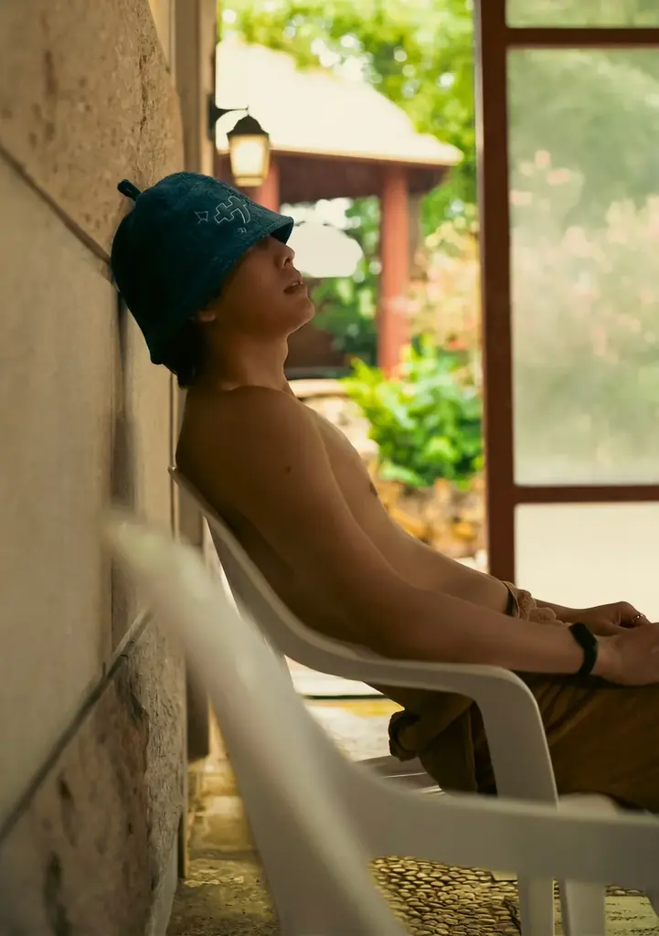 新作の『サ』パイルサウナハットは、綿100%のパイル生地を採用し、サウナでの着用時に肌触りがやわらかく快適に使えるよう設計されています。ハットは二重構造(2重構造)となっており、頭部をやさしく包みつつ保温性と熱からの保護を確保します。深めに被れるサイズ感を想定し、視界をほどよく遮ることで自分の時間に入りやすい使用感を追求しています。