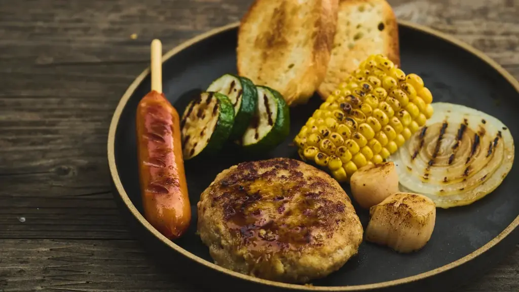 - お子様ワクワクBBQ(写真は1人前): 北島豚の旨味ハンバーグ、ウィンナー、ホタテ、季節の野菜、バケット(小さなお子様向け)