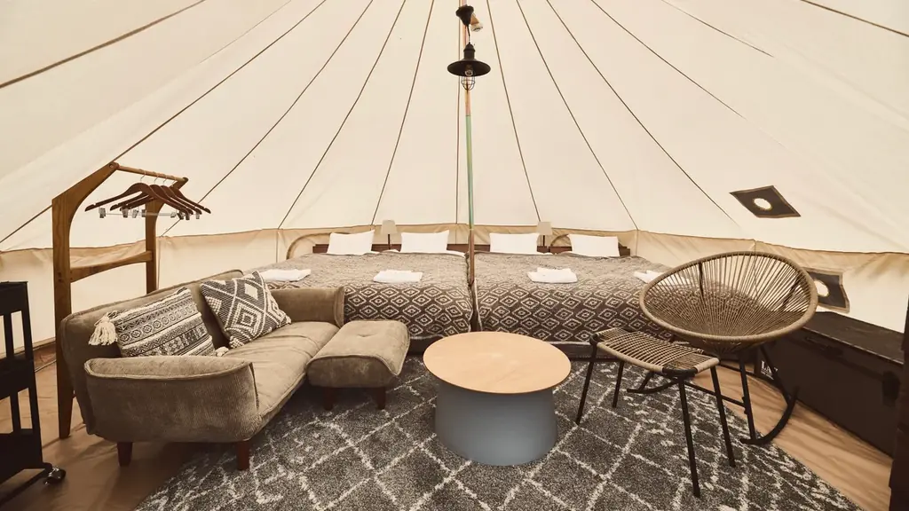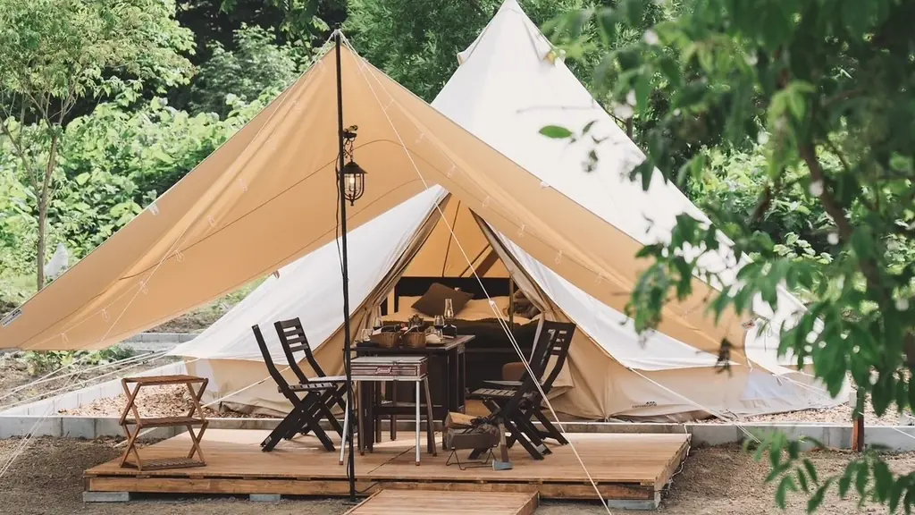 - 注意点: テントに水回り設備はなく、トイレ・シャワーは男女別の共用施設を利用する仕様。センターハウスではヘアアイロンやブランケットの貸出を行う。