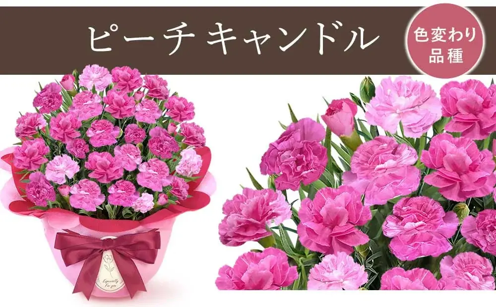 | 商品 | 選べるカーネーション15色+選べるスイーツ(和菓子・洋菓子等)セット(満足5号鉢) |