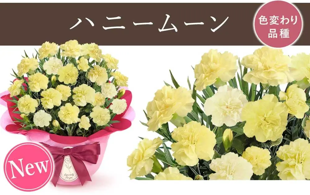 カーネーションは合計15色で展開され、そのうち3色が2026年の新色として導入されている。スイーツは和菓子・洋菓子など複数の選択肢から選べるため、甘味の嗜好や食べるタイミングに合わせた組み合わせが可能である。