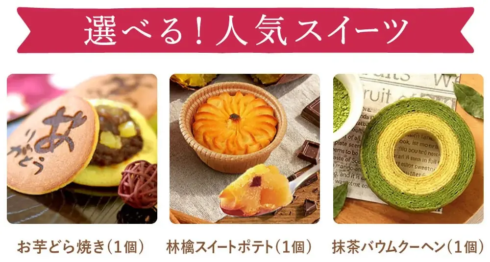 スイーツの選択肢は和菓子・洋菓子などのバリエーションを含み、贈る相手の嗜好に合わせて選ぶことで「見る喜び」と「味わう喜び」の両方を提供する設計だ。