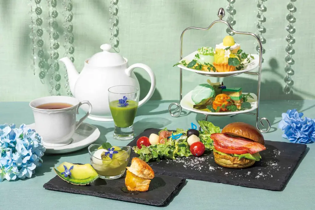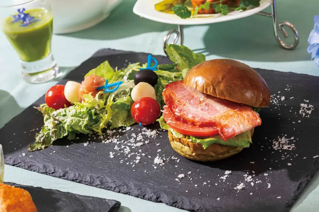 | 主なセイボリー | バジルバンズのBLTバーガー(ピンチョス・サラダ添え)、グリーンピースのヴィシソワーズ(※アフタヌーンティーのみ) |