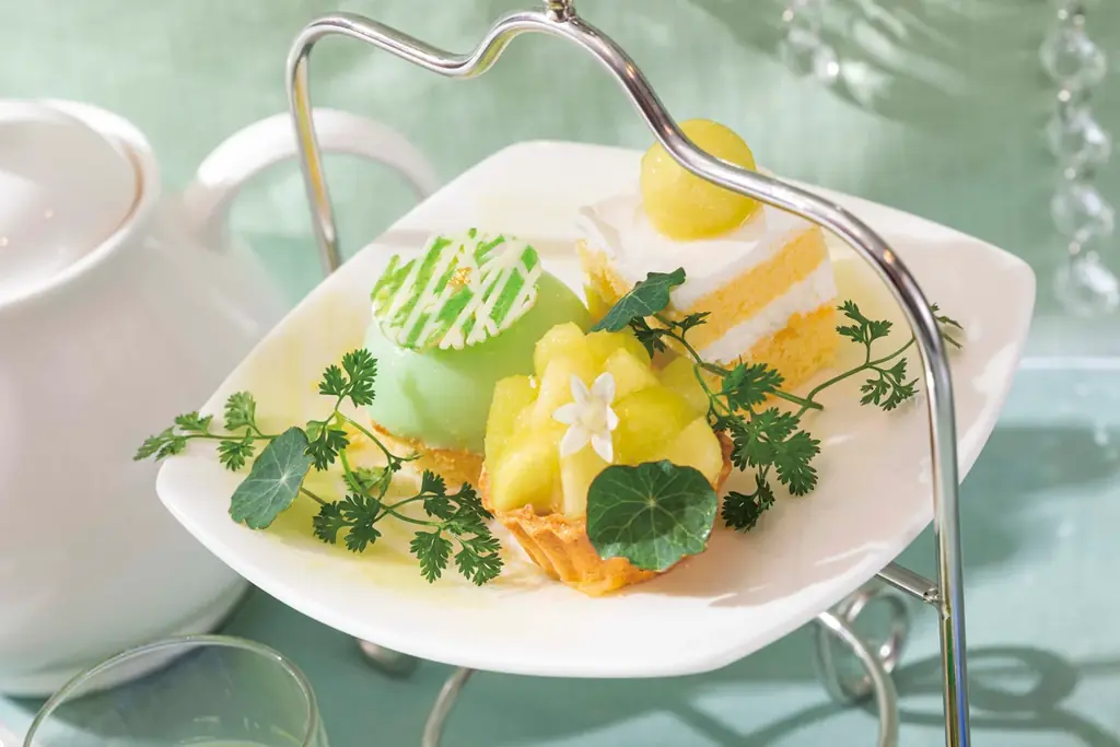 | 主なスイーツ | メロンショートケーキ、メロンタルト、メロンとカモミールのムース、メロンオペラ(ジャスミン風味)、メロンマカロン、スコーン(メロンジャム添え)ほか |
