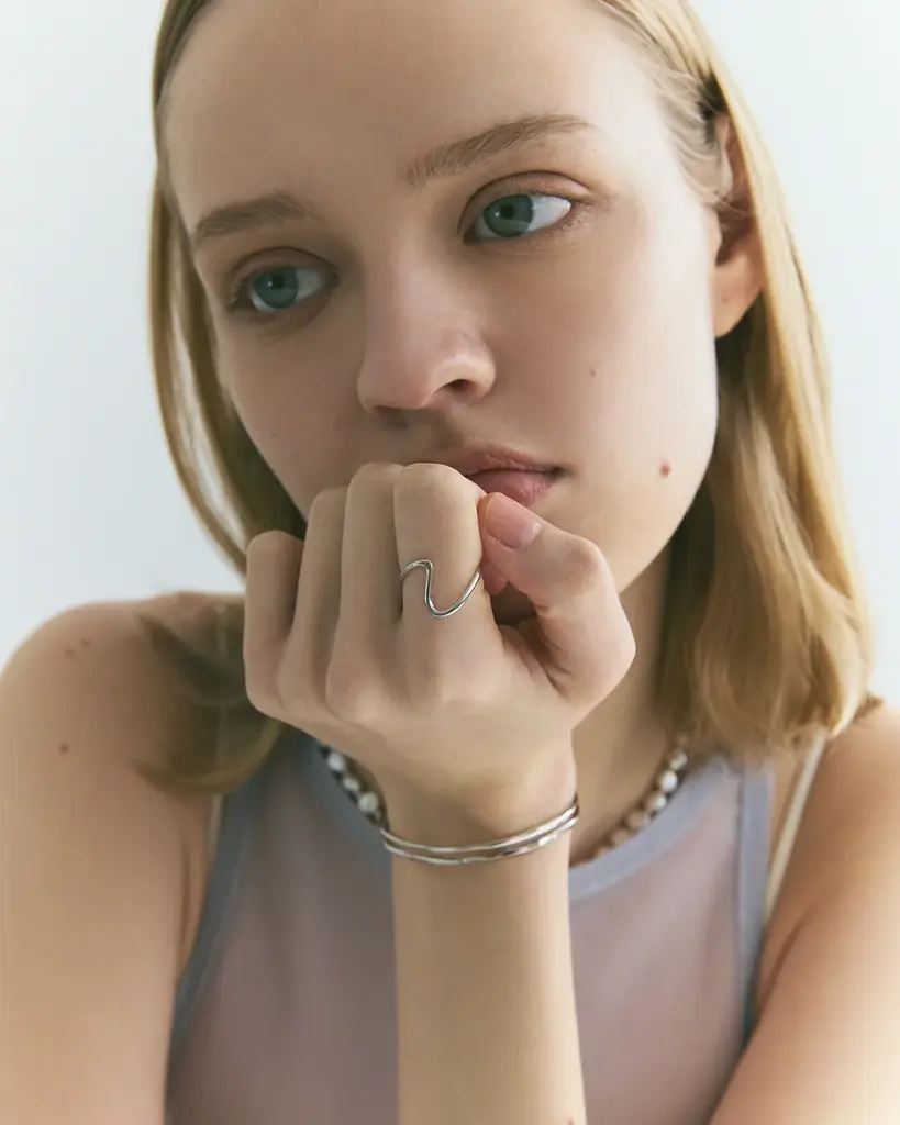 草木が風になびき、光が揺れる様子を柔らかな曲線で表現したシリーズです。視覚的には穏やかな動きを与えるデザインで、指先にニュアンスを添えるリングなどを中心に展開されます。