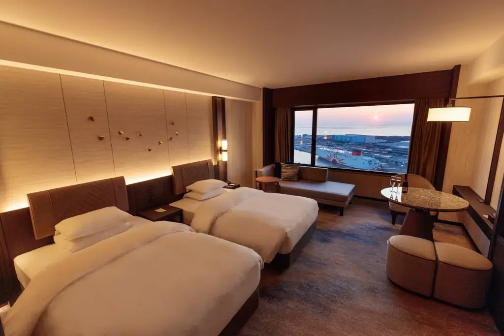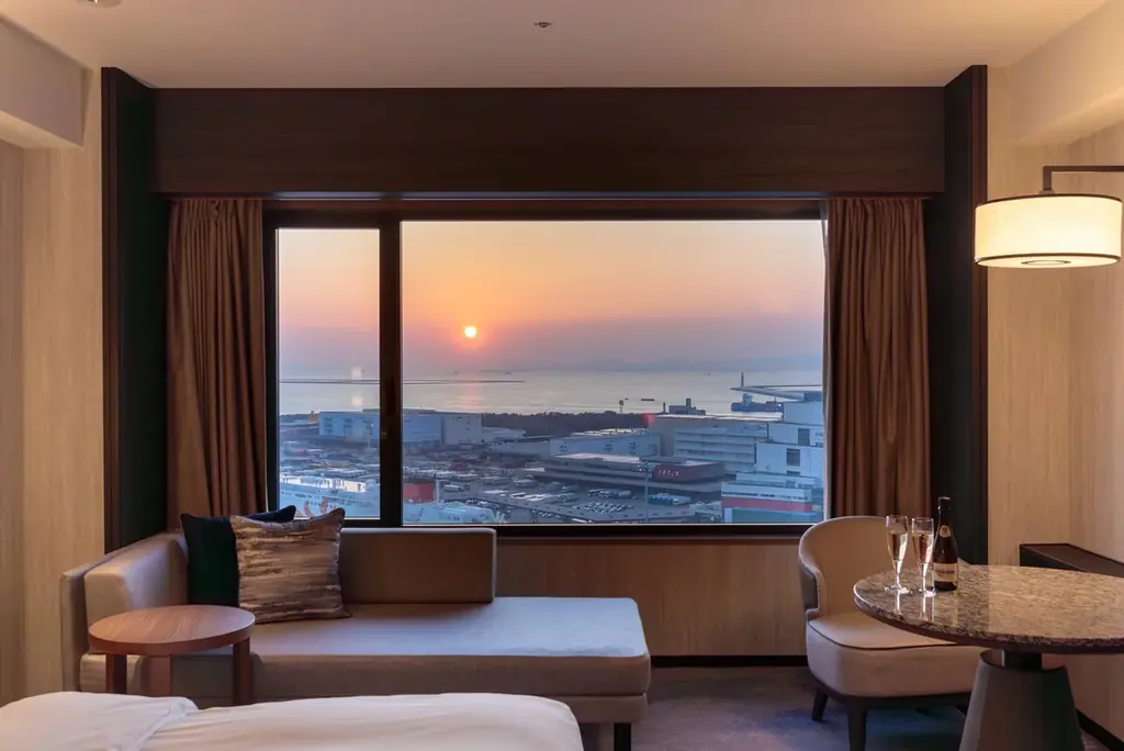 グランドプリンスホテル大阪ベイは地上28階、客室数432室の高層アーバンリゾートホテルです。2023年7月にリブランドオープンして以降、客室を中心に改装を実施し、ベイエリアの観光拠点としての体制を整えてきました。お部屋からは大阪湾に沈む夕陽や大阪・兵庫の夜景が望めるロケーションとなっています。