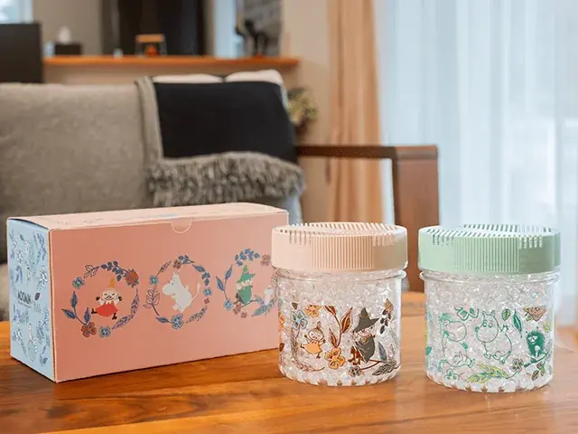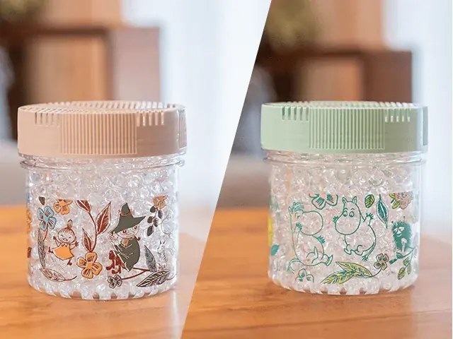デザイン面では、容器表裏で異なるキャラクターを描くなどムーミン谷の物語性を日常に取り込める工夫がなされています。たとえば消臭ビーズ容器の反対側にはリトルミイが描かれているなど、前後で違うデザインを楽しめます。