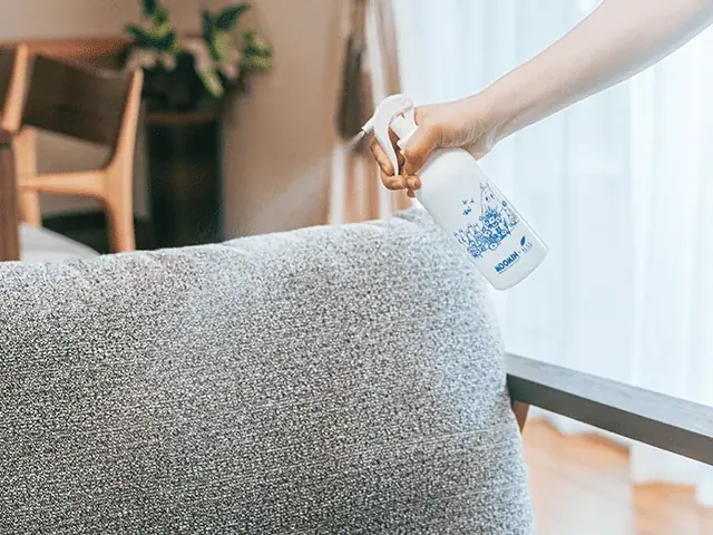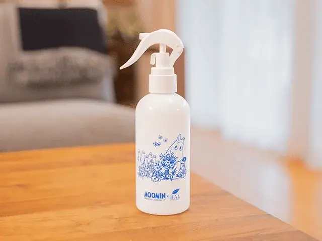 布製品に使用できるミストタイプの除菌消臭剤です。ムーミンとニョロニョロのシンプルで可愛いデザインが施されており、ベッド、ソファ、スニーカー、衣類など日常のさまざまなアイテムに直接スプレーできます。