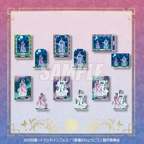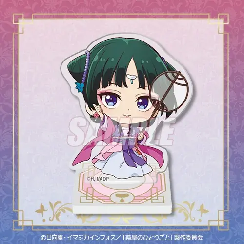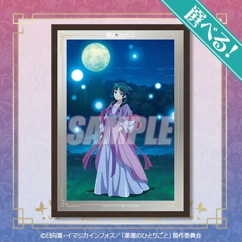 今回のオンラインくじでは、TVアニメ『薬屋のひとりごと』の描き下ろしイラストを使用した多彩な賞品が用意されています。賞ごとに仕様や種類が異なり、いずれもキャラクターファンにとって収集価値の高いラインナップです。