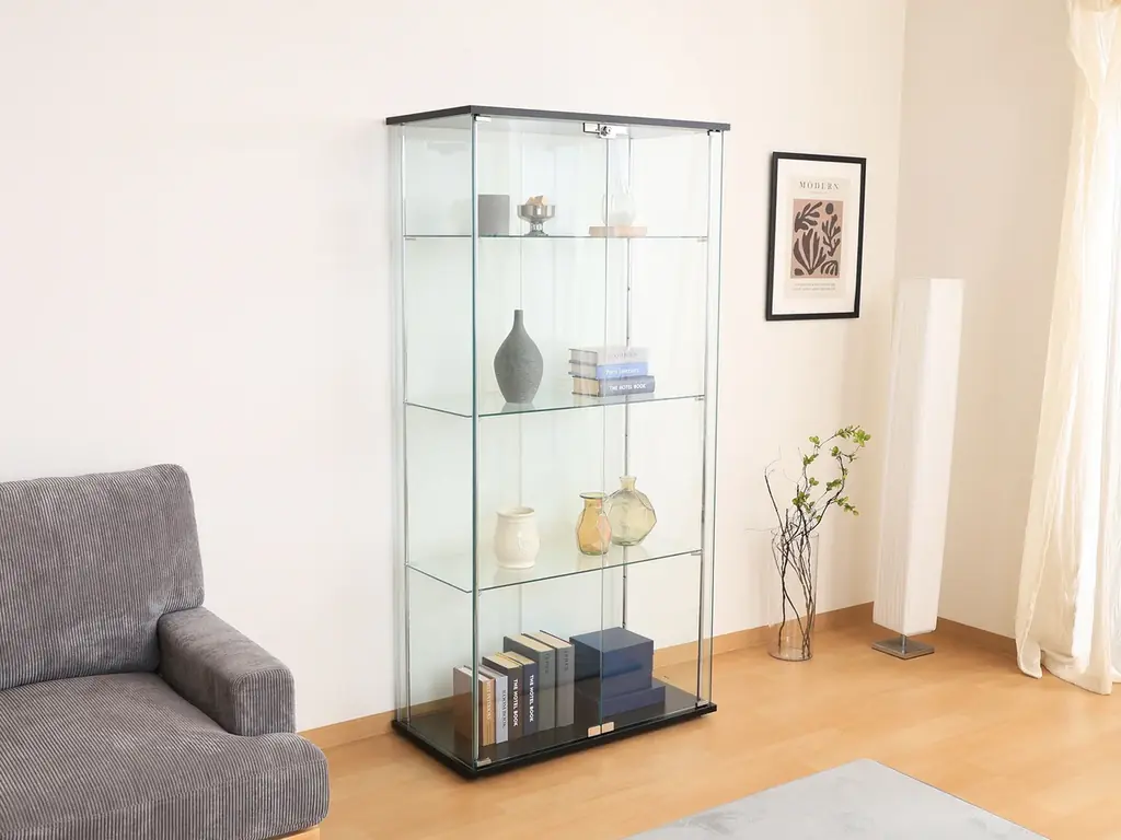 「ノイ」は単にコレクションを並べるだけでなく、安全性と展示性を両立する点に重点を置いた設計が特徴です。全面ガラス仕様によりどの角度からも見やすく、展示物の立体感を活かす構造になっています。