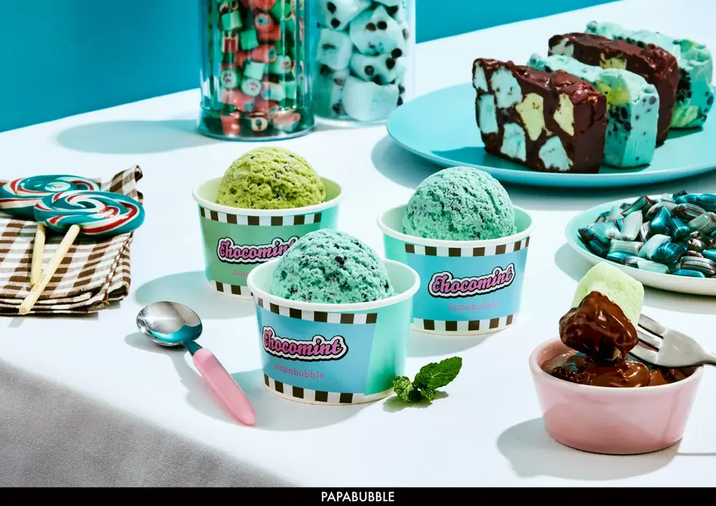 クラフトキャンディシアターとして知られるPAPABUBBLE(パパブブレ)が、毎年恒例の季節商品としてチョコミントシリーズを展開します。今回のシリーズは、レトロアメリカンなアイスショップやダイナーを想起させるポップでカラフルなビジュアルに加え、遊び心あふれるシュールなデザインが特徴です。