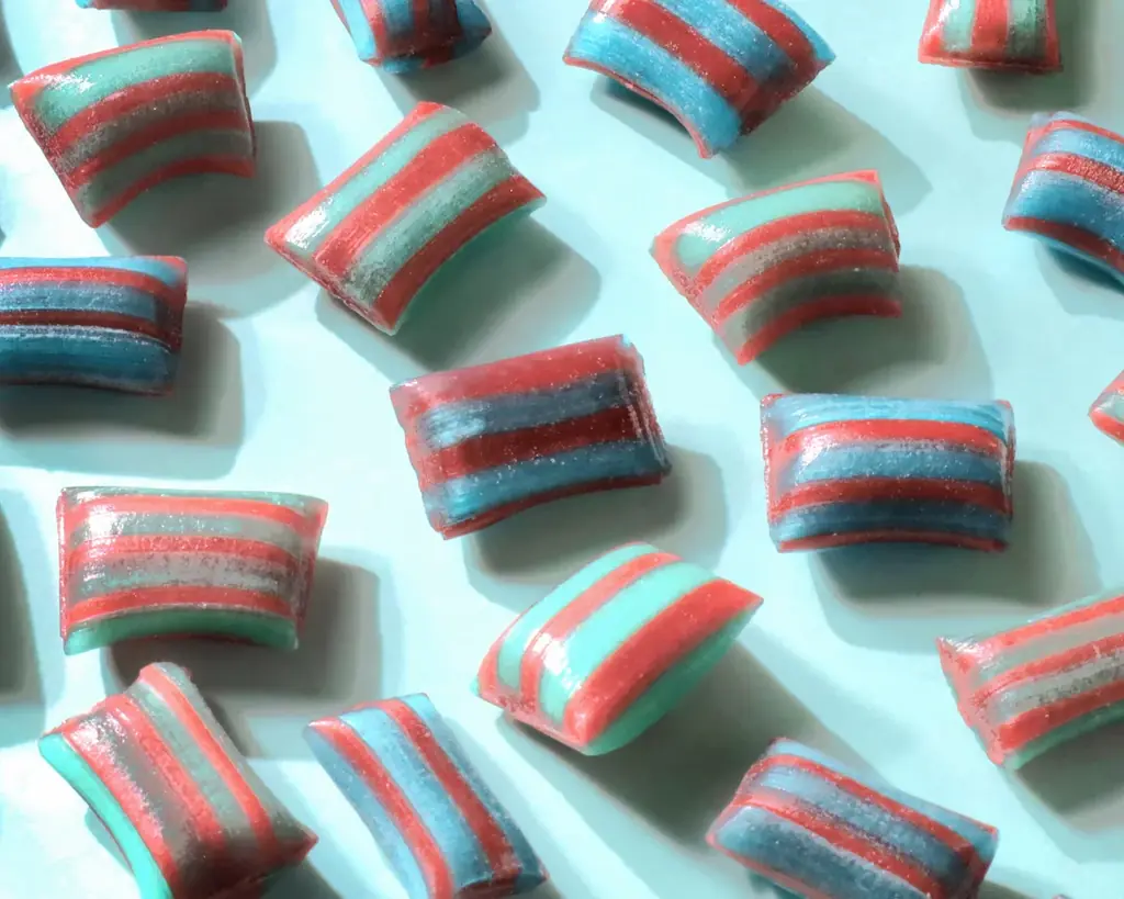 キャンディはパリッとした食感と中のチョコレートのコクを同時に感じられる設計で、ミント配合量を段階的に変えることで爽快感のレベルをコントロールしています。
