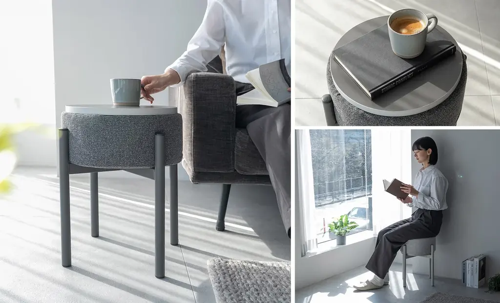 MORPHINは、狭小住宅やワンルーム、オフィス、店舗など、限られた空間での利便性を高めることを目的に開発されました。日常生活の中で「座る」「ちょっと置く」といった行為をスムーズにするために、シンプルな動作で役割を切り替えられる仕組みを採用しています。