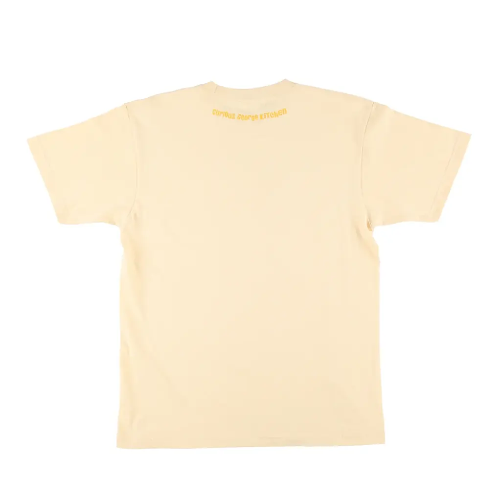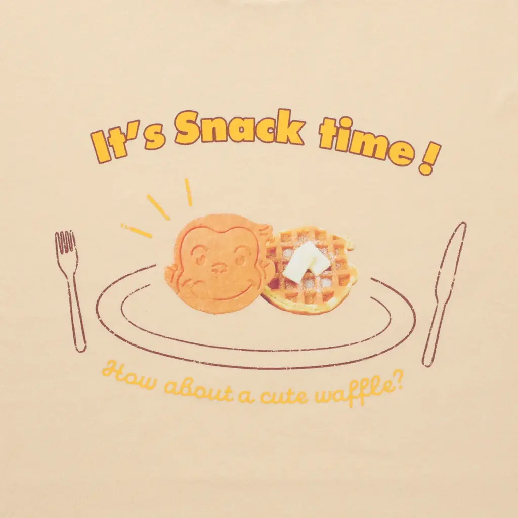 オープンに合わせて、Curious George Kitchenオリジナルの新商品が先行販売されます。ラインナップはTシャツ3種とワッフル生地のミニトートの全4種です。いずれもカフェの人気メニューをモチーフにしたデザインが特徴です。
