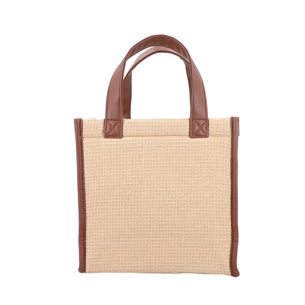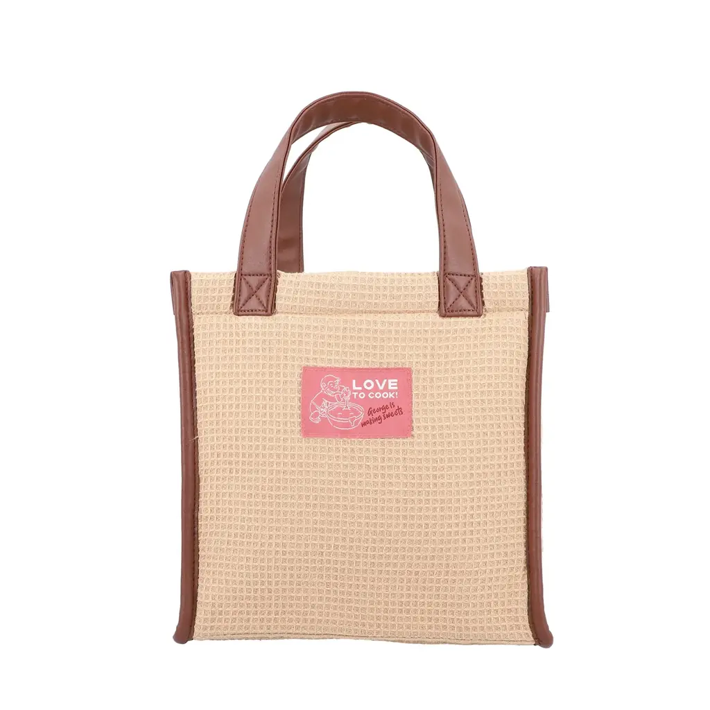 ワッフル生地を用いたミニトートは、A5サイズのノートがすっぽり入る実用的なサイズ感です。カジュアルなワッフル素材と合皮の持ち手、パイピングの異素材使いで引き締まったデザインに仕上げられています。