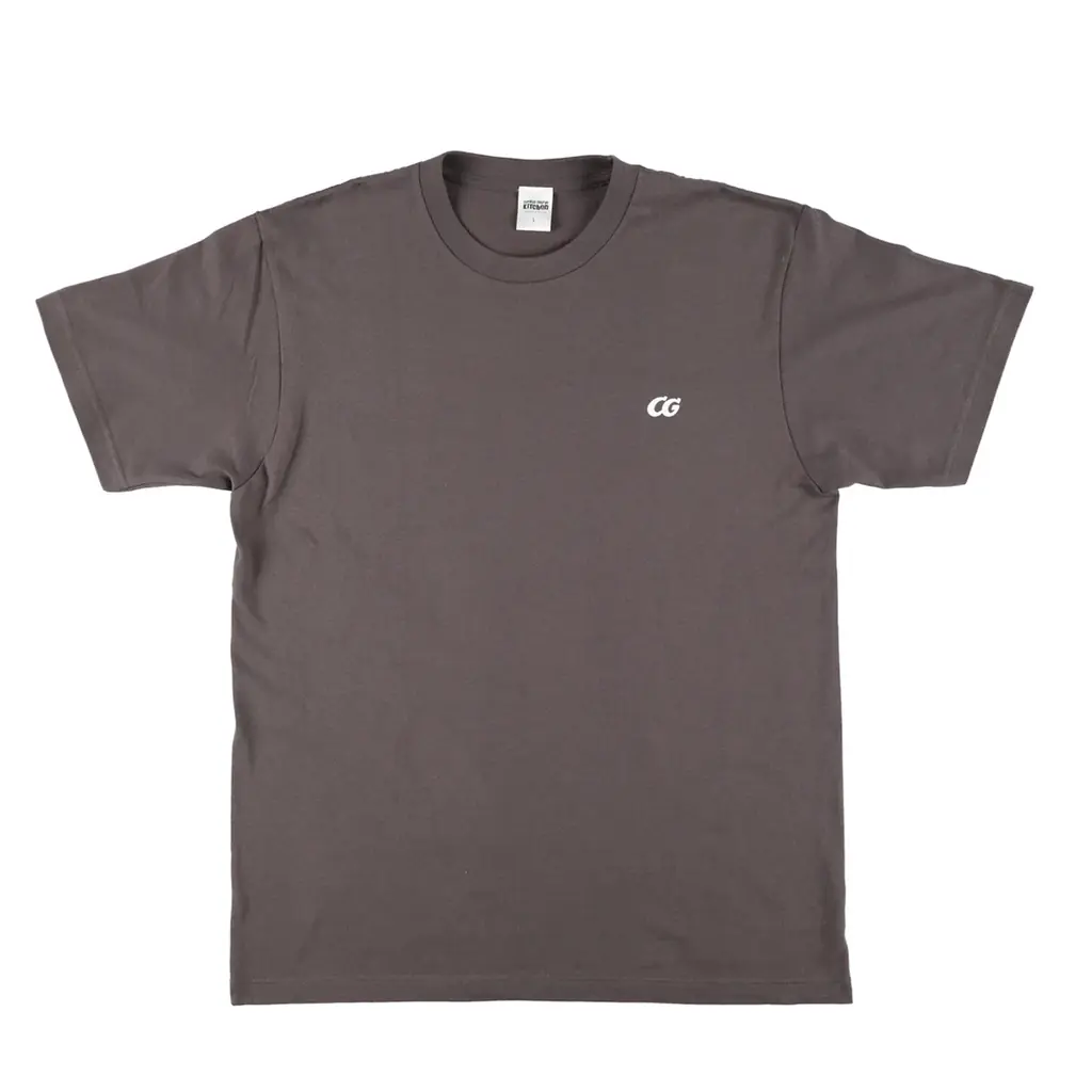 - メニューTシャツ ハンバーガー:表面にシンプルな「CG」ロゴ、背面に目玉焼きバーガーを黒板アート風にデザイン。カラーはスモークブラック。サイズ詳細:M(着丈約70×身幅約52×肩幅約47×袖丈約20cm)、L(着丈約74×身幅約55×肩幅約50×袖丈約22cm)、XL(着丈約78×身幅約58×肩幅約53×袖丈約24cm)。素材:綿。