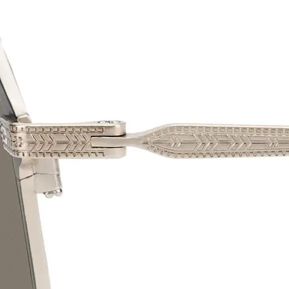 - 彫金(ZF263G01_14F1):フロントやテンプルに矢羽根モチーフの繊細な彫金を施しています。